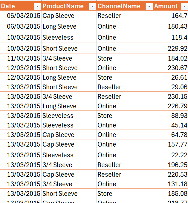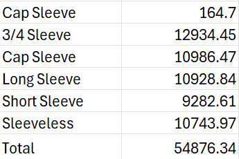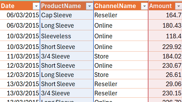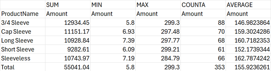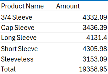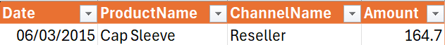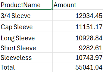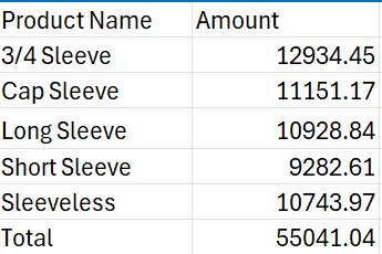 Vì dòng Cap Sleeve có giá trị Amount = 164.7 là giá trị dòng đầu tiên xuất hiện trong bảng dữ liệu của chúng ta.