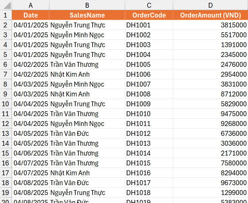 Để demo phần này mình đang sử dụng khối dữ liệu như hình dưới.