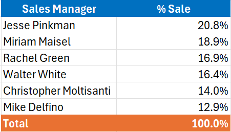 Đầu tiên chúng ta sẽ học cách tạo ra cột % doanh thu thay vì Total Sales đã tính toán từ đầu bài viết tới đây đã.