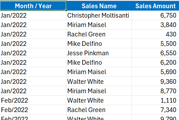 2.12. Tạo báo cáo theo từng bạn Sales theo từng tháng trong năm.