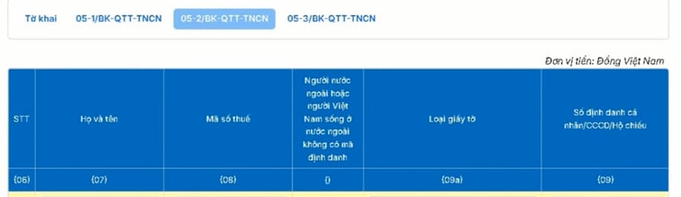 Bước 10: Người nộp thuế Chọn biểu 05-1/BK-QTT-TNCN để cập nhập thông tin người lao động