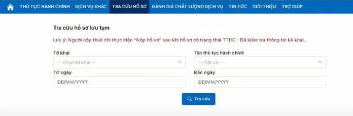 Người nộp thuế Chọn Mục Tra cứu Hồ sơ lưu tạm