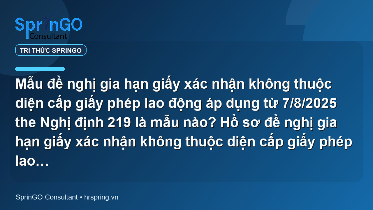 Mẫu đề nghị gia hạn giấy xác nhận không thuộc diện cấp giấy phép lao động áp dụng từ 7/8/2025 the Nghị định 219 là mẫu nào? Hồ sơ đề nghị gia hạn giấy xác nhận không thuộc diện cấp giấy phép lao động gồm gì?
