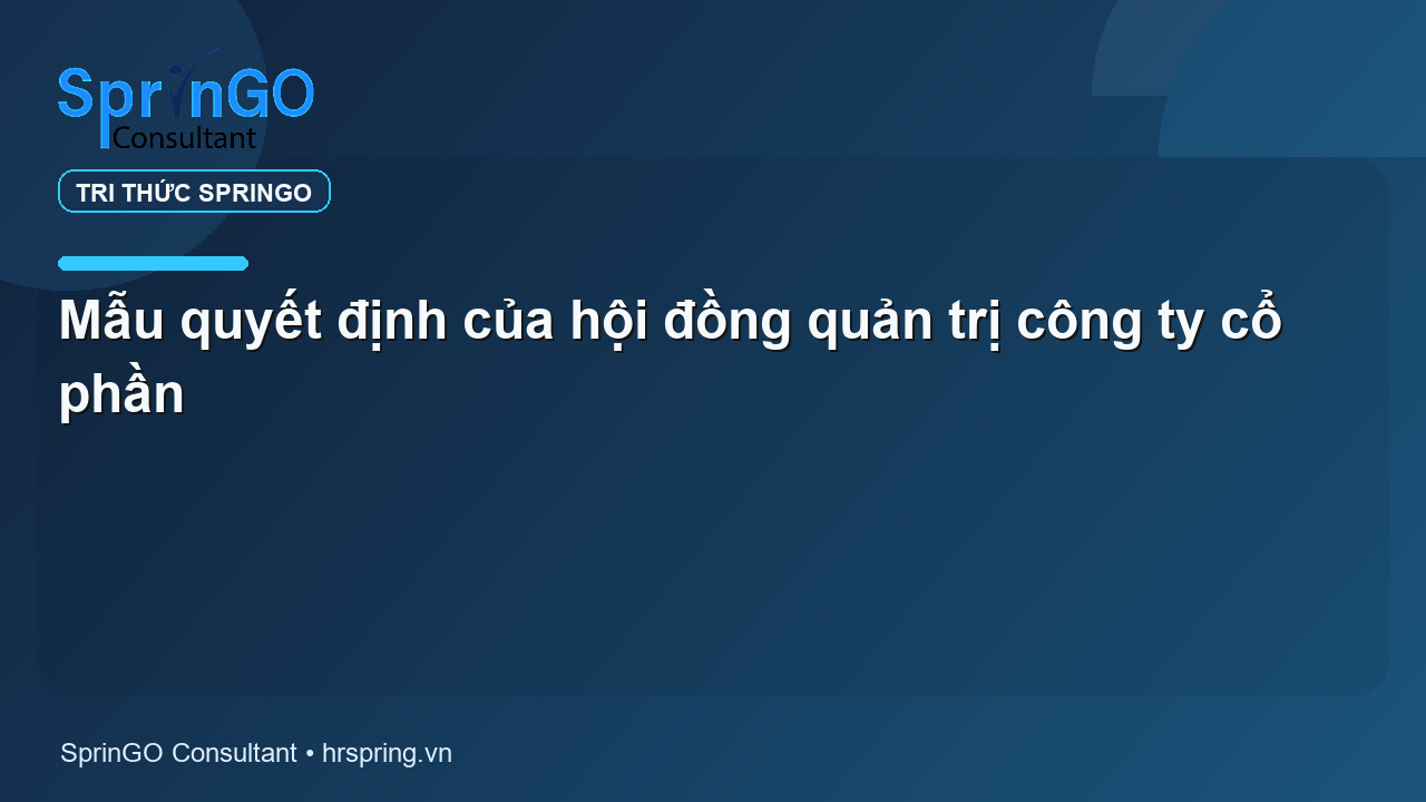 Dưới đây là mẫu Quyết định sử dụng trong Hội đồng quản trị của công ty cổ phần do SprinGO soạn thảo:
