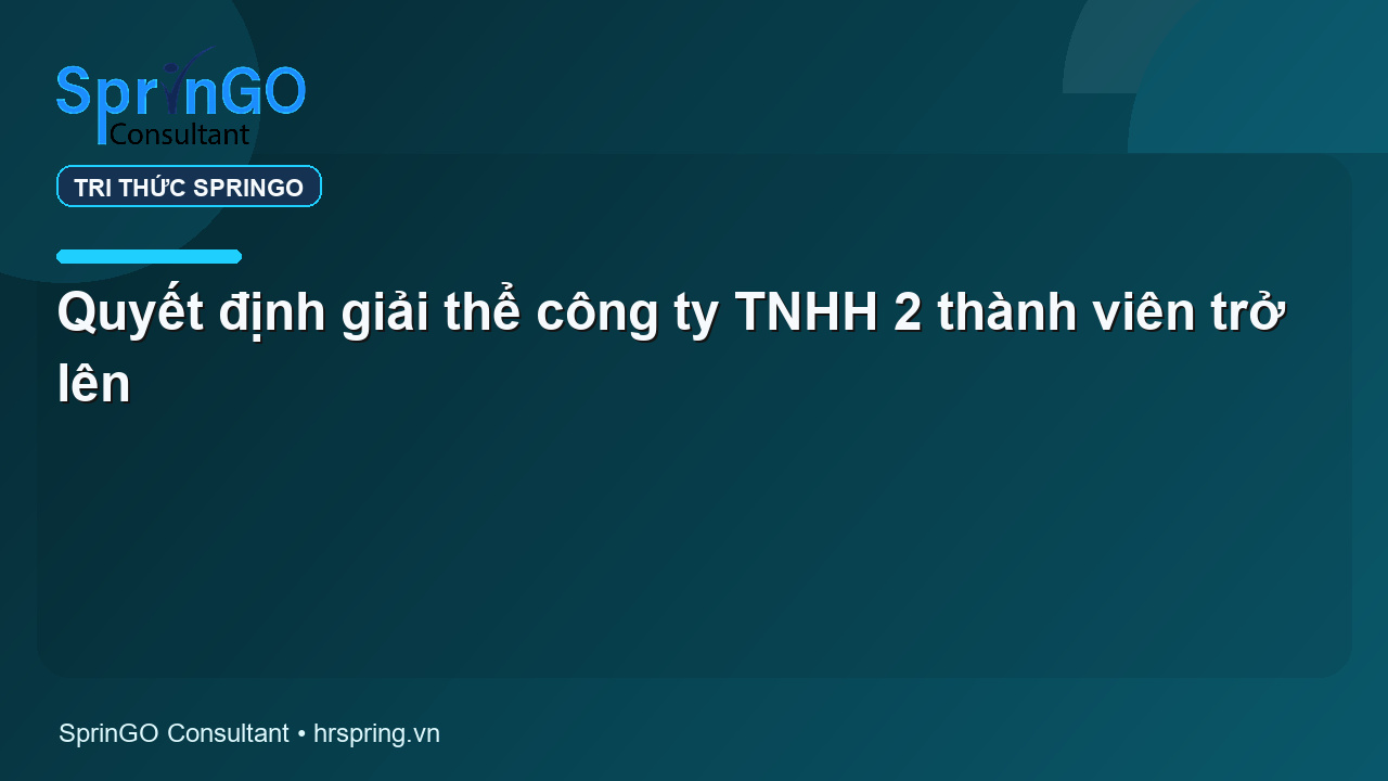 Trên đây là mẫu Quyết định giải thể công ty TNHH 2 thành viên trở lên của HĐTV theo quy định tại Luật Doanh nghiệp hiện hành. Nếu còn thắc mắc, xin mời quý khách hàng liên hệ với SprinGO để được giải đáp miễn phí.