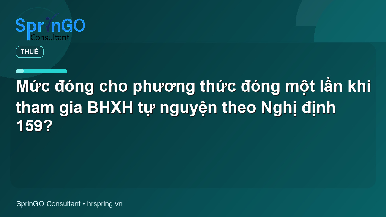 Mức đóng cho phương thức đóng một lần khi tham gia BHXH tự nguyện theo Nghị định 159?
