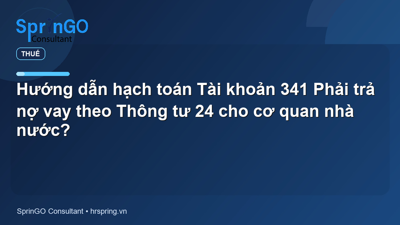 Phương pháp kế toán một số nghiệp vụ kinh tế chủ yếu liên quan đến Tài khoản 341 Phải trả nợ vay được quy định tại Phụ lục I Hệ thống tài khoản kế toán và hướng dẫn hạch toán kế toán ban hành kèm theo Thông tư 24/2024/TT-BTC như sau: