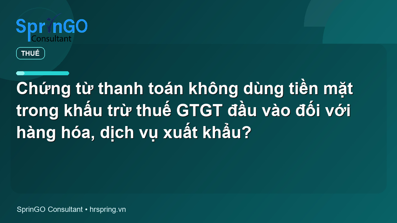 Chứng từ thanh toán không dùng tiền mặt trong khấu trừ thuế GTGT đầu vào đối với hàng hóa, dịch vụ xuất khẩu?
