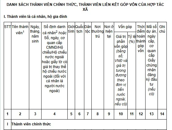 Tải Mẫu Danh sách thành viên chính thức, thành viên liên kết góp vốn của hợp tác xã?