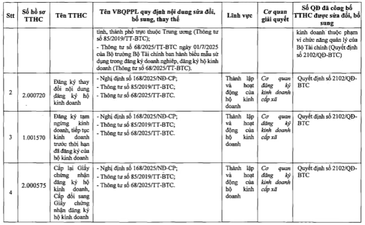 Theo đó, tại Điều 1 Quyết định 2353/QĐ-BTC năm 2025 công bố kèm theo về thủ tục hành chính mới ban hành, được sửa đổi, bổ sung trong lĩnh vực thành lập và hoạt động của hộ kinh doanh thuộc phạm vi chức năng quản lý của Bộ Tài chính.