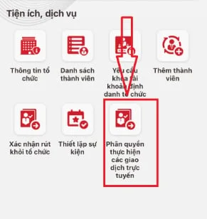 * Sau đó chọn ở mục quản trị => Tích chọn Phân quyền thực hiện các giao dịch trực tuyến