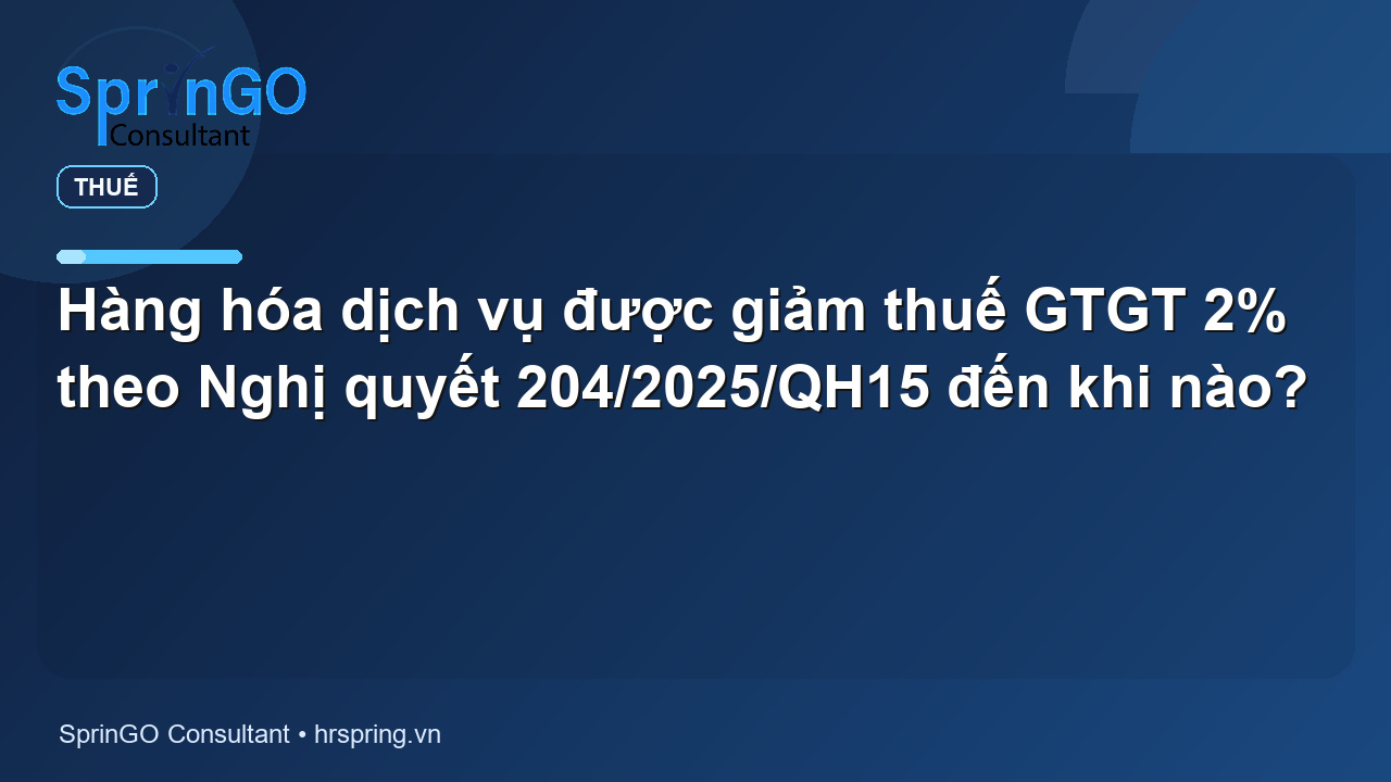 Như vậy, hàng hóa dịch vụ được giảm thuế GTGT 2% theo Nghị quyết 204/2025/QH15 đến hết ngày 31/12/2025.