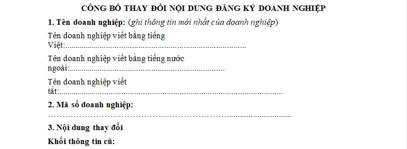 Mẫu Công bố thay đổi nội dung đăng ký doanh nghiệp mới nhất 2025?