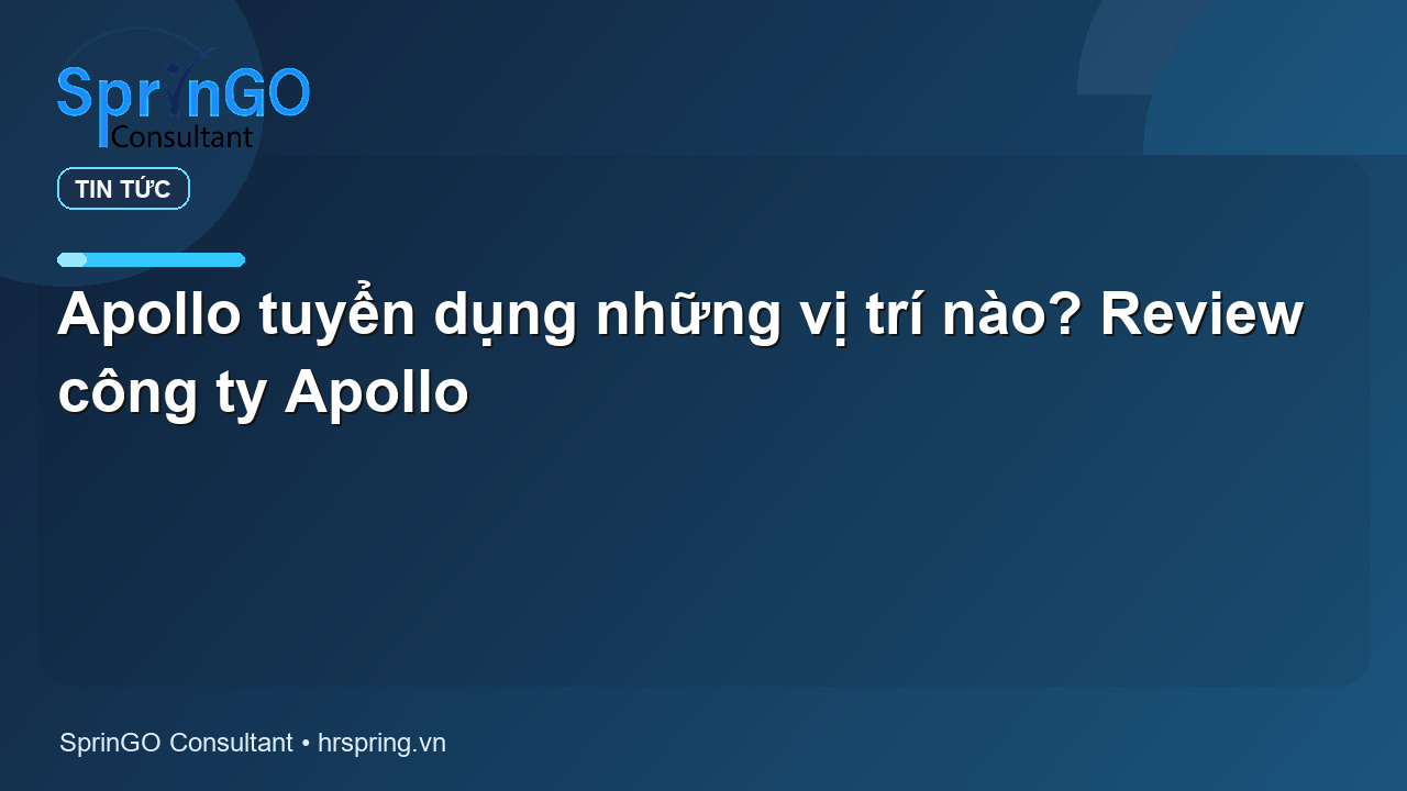Lưu ý: Quy trình tuyển dụng tại Apollo có thể thay đổi tùy theo từng vị trí cụ thể và sẽ được thông tin chi tiết trong tin tuyển dụng hoặc mô tả công việc (JD). Nội dung dưới đây của HRSpring chỉ mang tính chất tham khảo, ứng viên nên tìm hiểu kỹ trước khi ứng tuyển để đảm bảo phù hợp với yêu cầu của từng vị trí.
