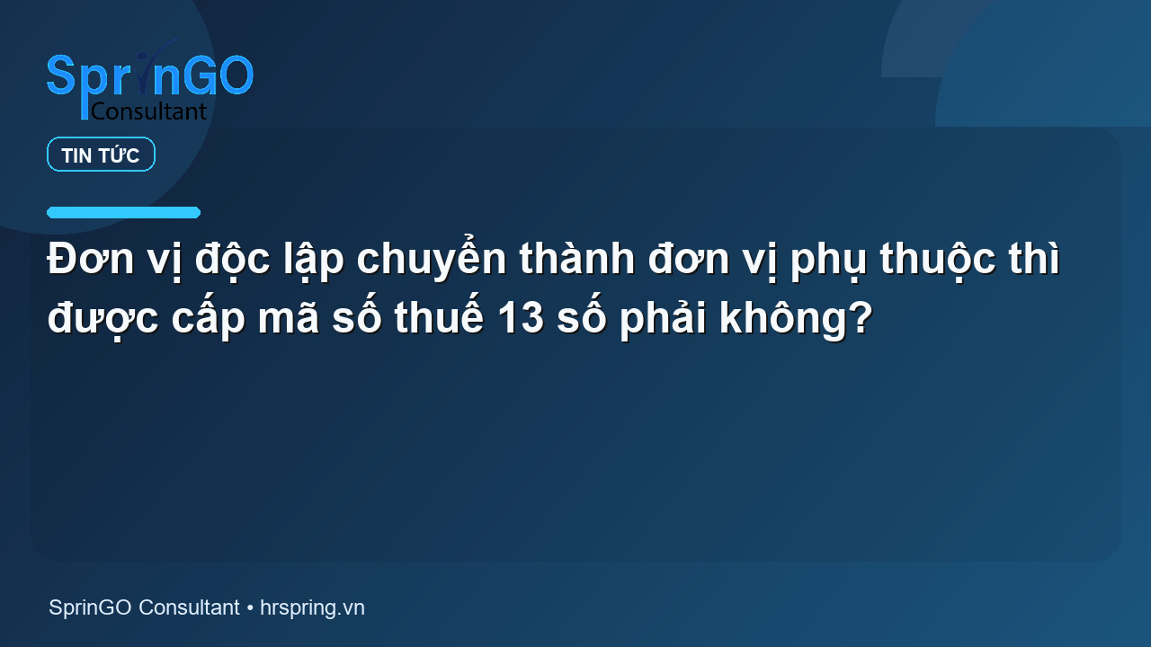 Đơn vị độc lập chuyển thành đơn vị phụ thuộc thì được cấp mã số thuế 13 số phải không?