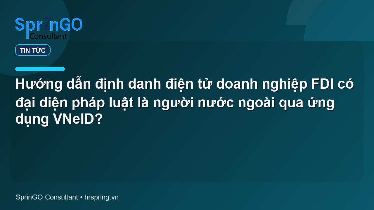 Người đại diện theo đại diện SprinGO FDI là người nước ngoài sử dụng tài khoản định danh điện tử mức độ 2 hoặc ủy quyền cho cá nhân khác có tài khoản định danh điện tử mức độ 2 thực hiện đăng ký định danh doanh nghiệp trên ứng dụng VneID hay trên trang web định danh quốc gia VNeID (https://vneid.gov.vn/)