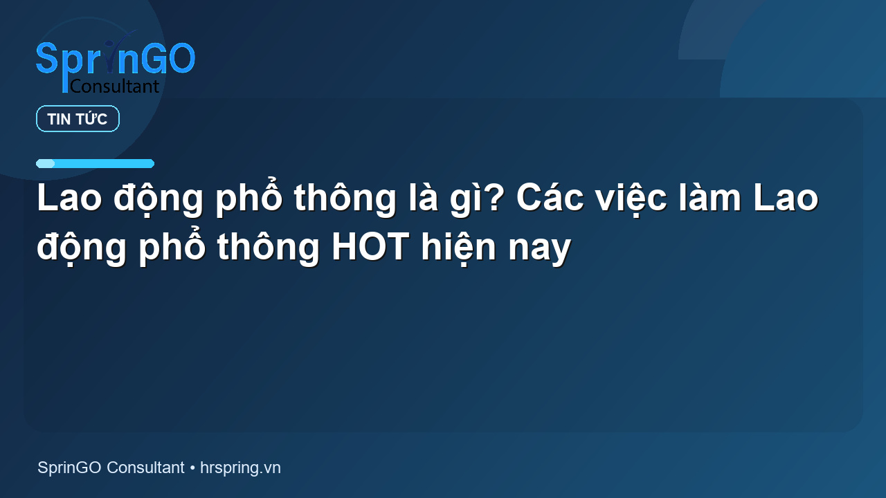 Theo thống kê của Cục Việc làm (Bộ Lao động Thương binh và Xã hội), trong năm 2024, nhóm Lao động phổ thông đang đối mặt với tình trạng thiếu hụt nhân sự nghiêm trọng, chiếm 44% tổng nhu cầu tuyển dụng trên toàn quốc. Vậy Lao động phổ thông là gì? Có những việc làm Lao động phổ thông nào phổ biến? Hãy cùng HRSpring tìm hiểu chi tiết ngay dưới đây nhé!