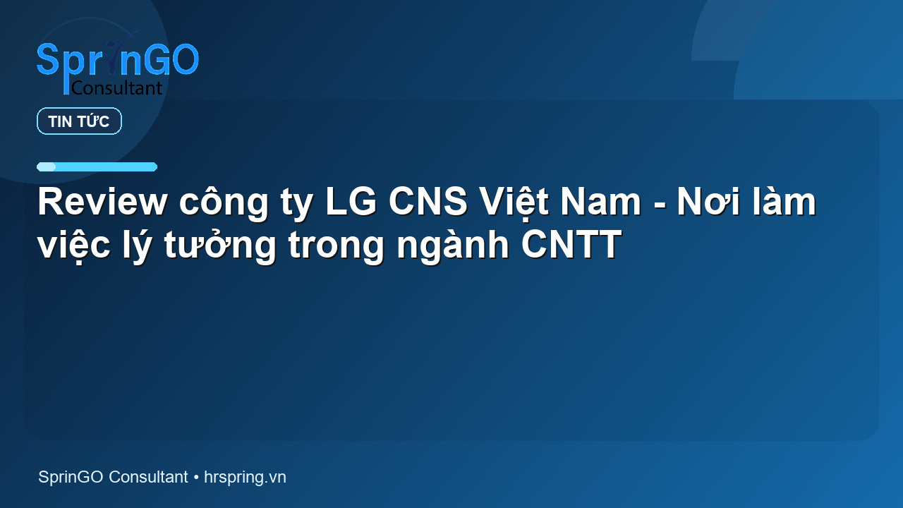 Là thành viên thuộc Tập đoàn LG – một trong những tập đoàn công nghệ hàng đầu Hàn Quốc, LG CNS Vietnam đã nhanh chóng thu hút sự quan tâm của đông đảo ứng viên trong lĩnh vực Công nghệ thông tin. Công ty được biết đến với chính sách lương thưởng hấp dẫn, chế độ phúc lợi toàn diện và lộ trình thăng tiến rõ ràng, tạo điều kiện để mỗi cá nhân gắn bó và phát triển lâu dài trong tổ chức. Vậy LG CNS tuyển dụng những vị trí nào và môi trường làm việc ra sao? Cùng HRSpring khám phá chi tiết về công ty này trong bài viết dưới đây!