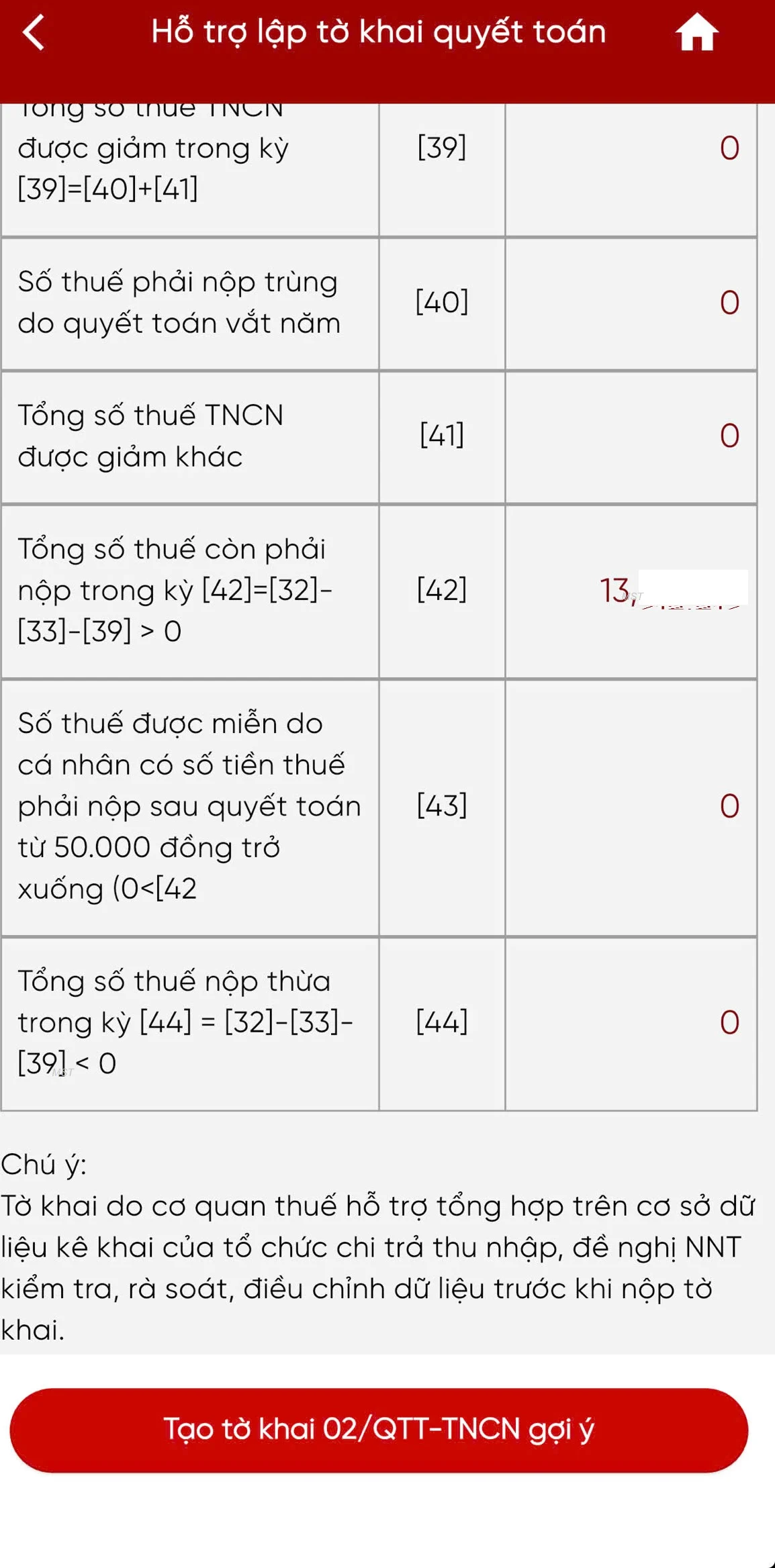 Bước 2: Nhấn Tra cứu, hệ thống hiển thị màn hình Thông tin hỗ trợ quyết toán thuế.