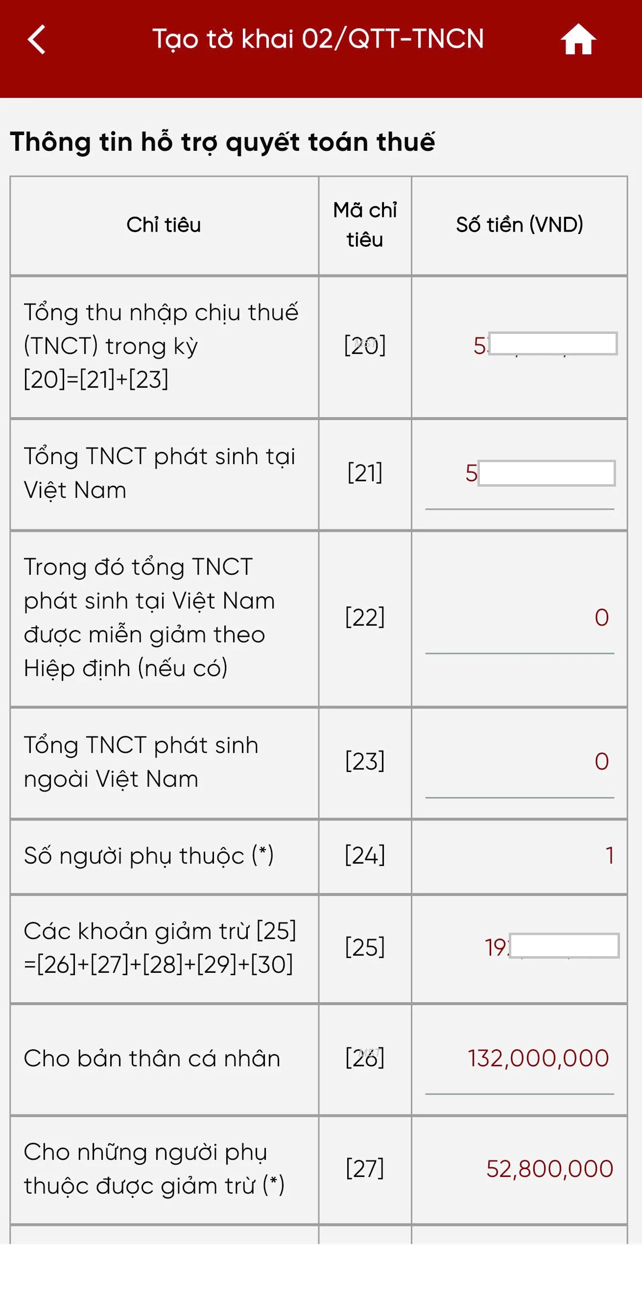 – Số tiền hoàn trả: Hiển thị theo số tiền tại chỉ tiêu [46], không cho sửa