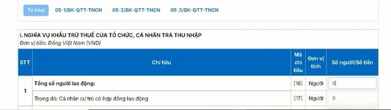 – Tên tổ chức trả thu nhập: Tự động hiển thị, không cho sửa.
