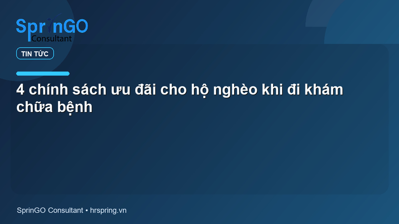 Các hộ gia đình nghèo luôn là đối tượng được nhà nước quan tâm và dành tặng nhiều chính sách ưu đãi trong nhiều lĩnh vực, trong đó có y tế. Dưới đây, SprinGO sẽ tổng hợp một số chính sách ưu đãi dành cho bệnh nhân nghèo đi khám chữa bệnh.
